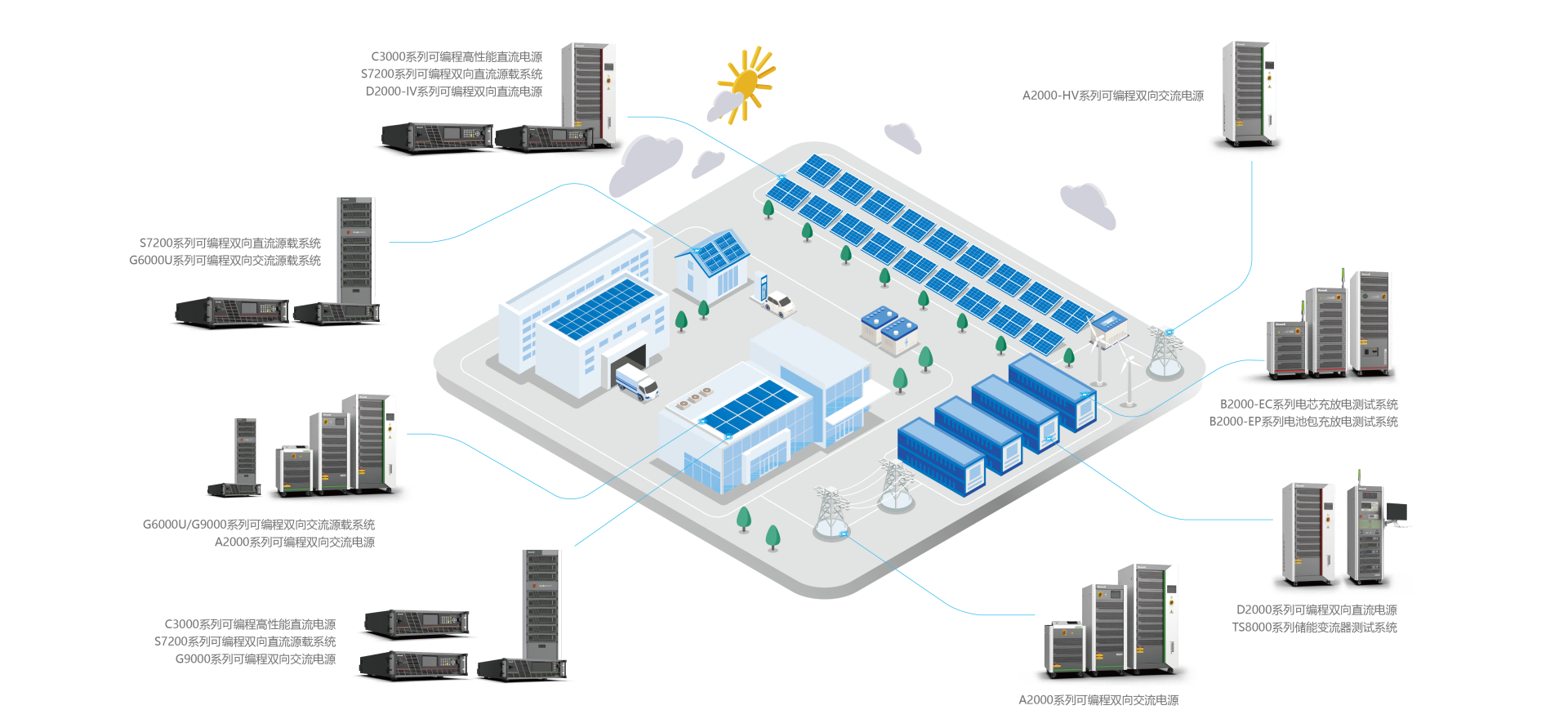 为搭建满足行业发展需求的高效测试平台,金年会针对光储推出整套测试解决方案,包含集中式、组串式逆变器测试,储能变流器测试、储能电池测试与户储一体机测试等。