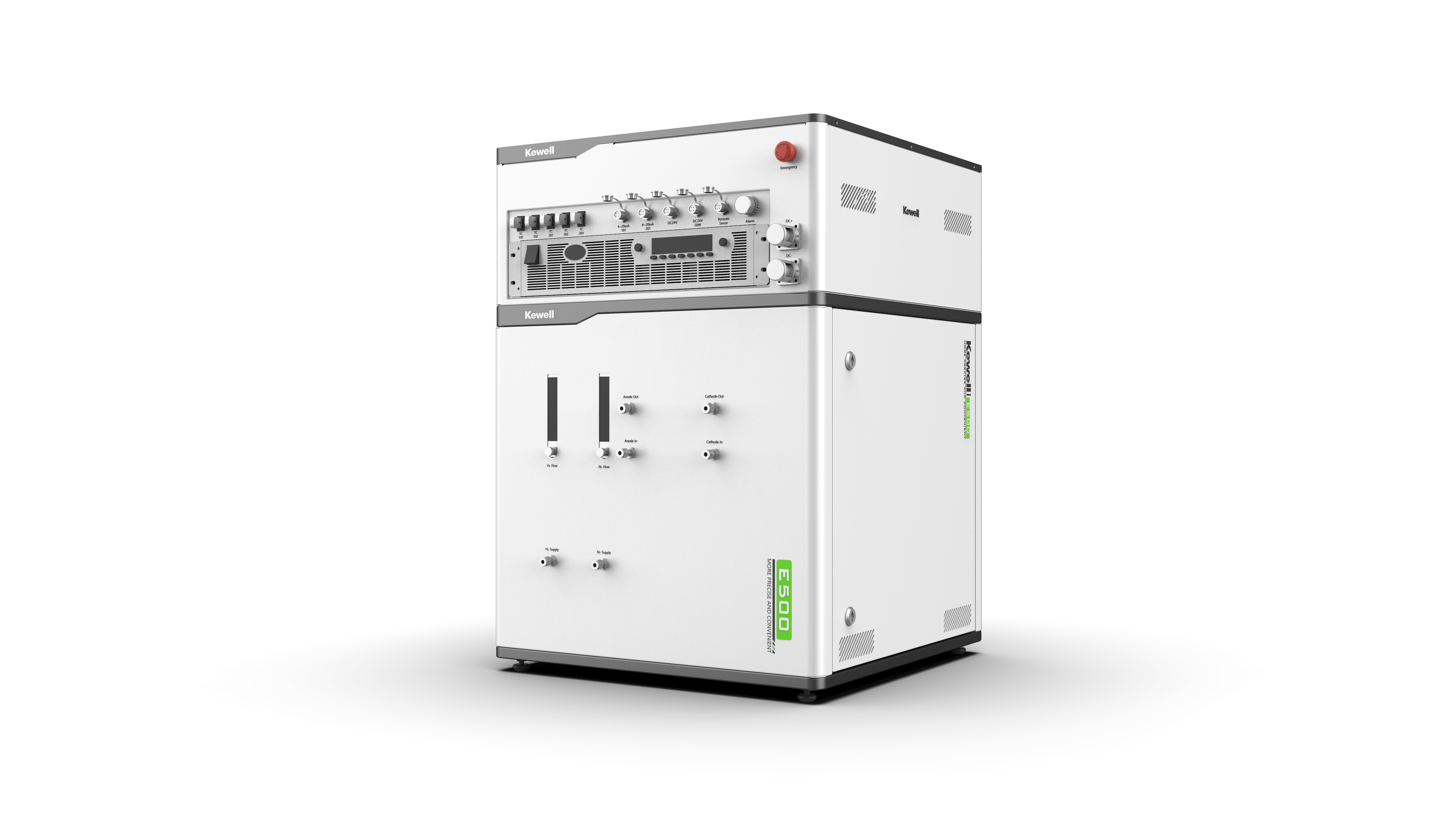 E500-ALK-L开发旨在为ALK水电解槽提供一个精确、可靠的测试平台。该系统运行压力最高2bar,由去电解液循环系统、氮气吹扫单元、压力调节单元、气水分离单元、气体分析预处理单元、PLC采集与控制单元、人机操作单元和安全监控单元等组成,采用公司自主开发的系统测试软件,可满足ALK电解槽的极化曲线、电化学测试、氧中氢浓度在线测试、敏感性测试、耐久性测试、产氢能耗效率、产氢质量测试和产品寿命等测试。